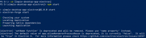 Use the following command to create your application:> electron-forge init simple-desktop-app-electronj